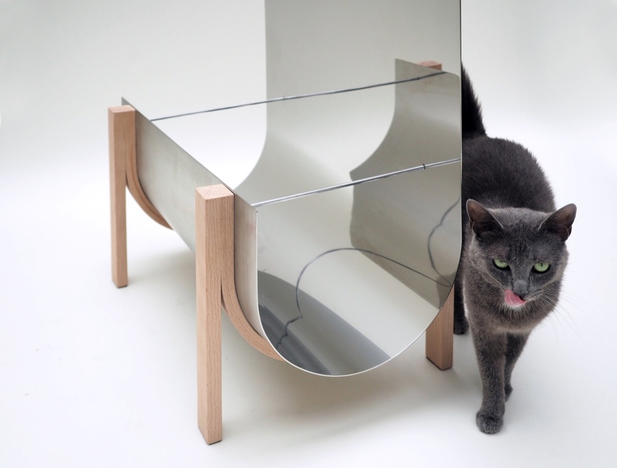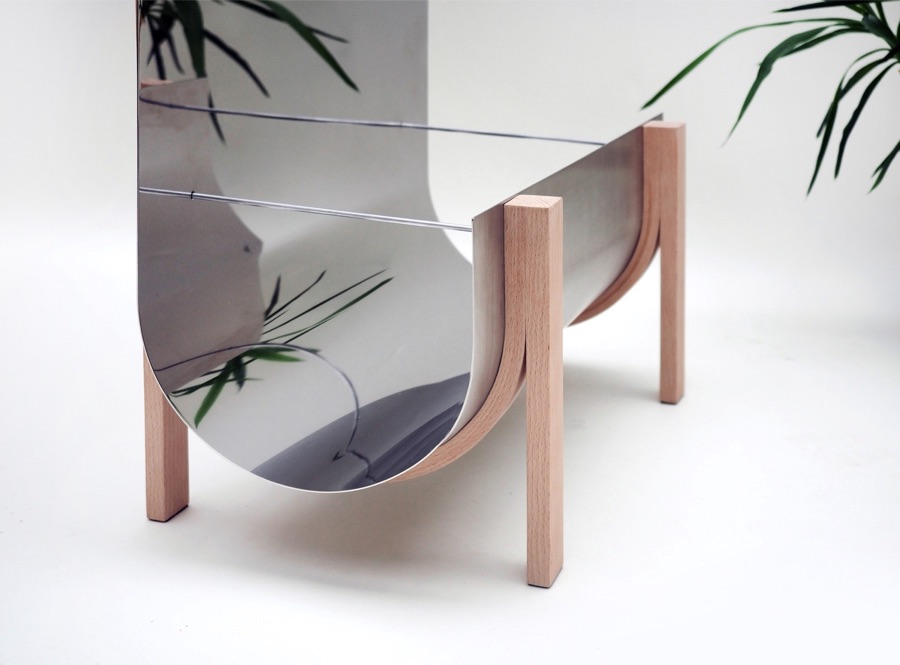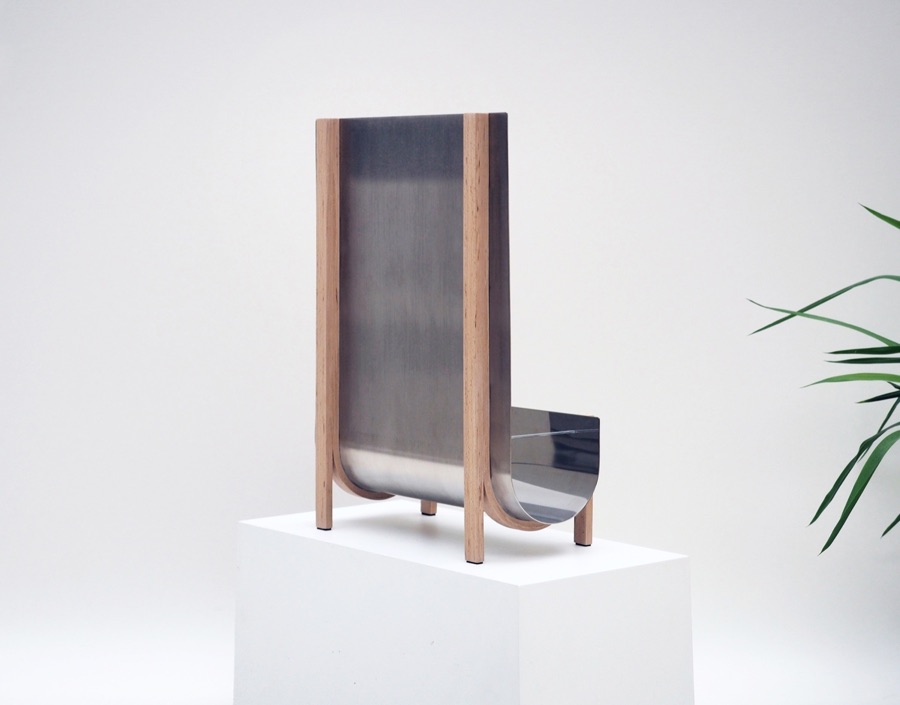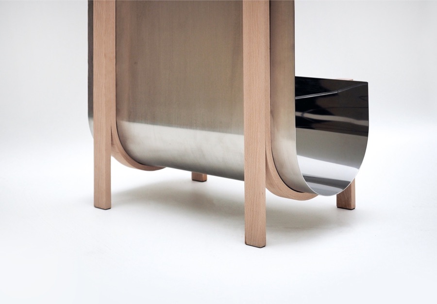 Polished stainless steel, Beech wood
